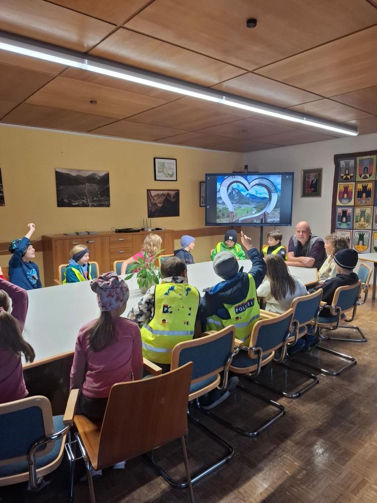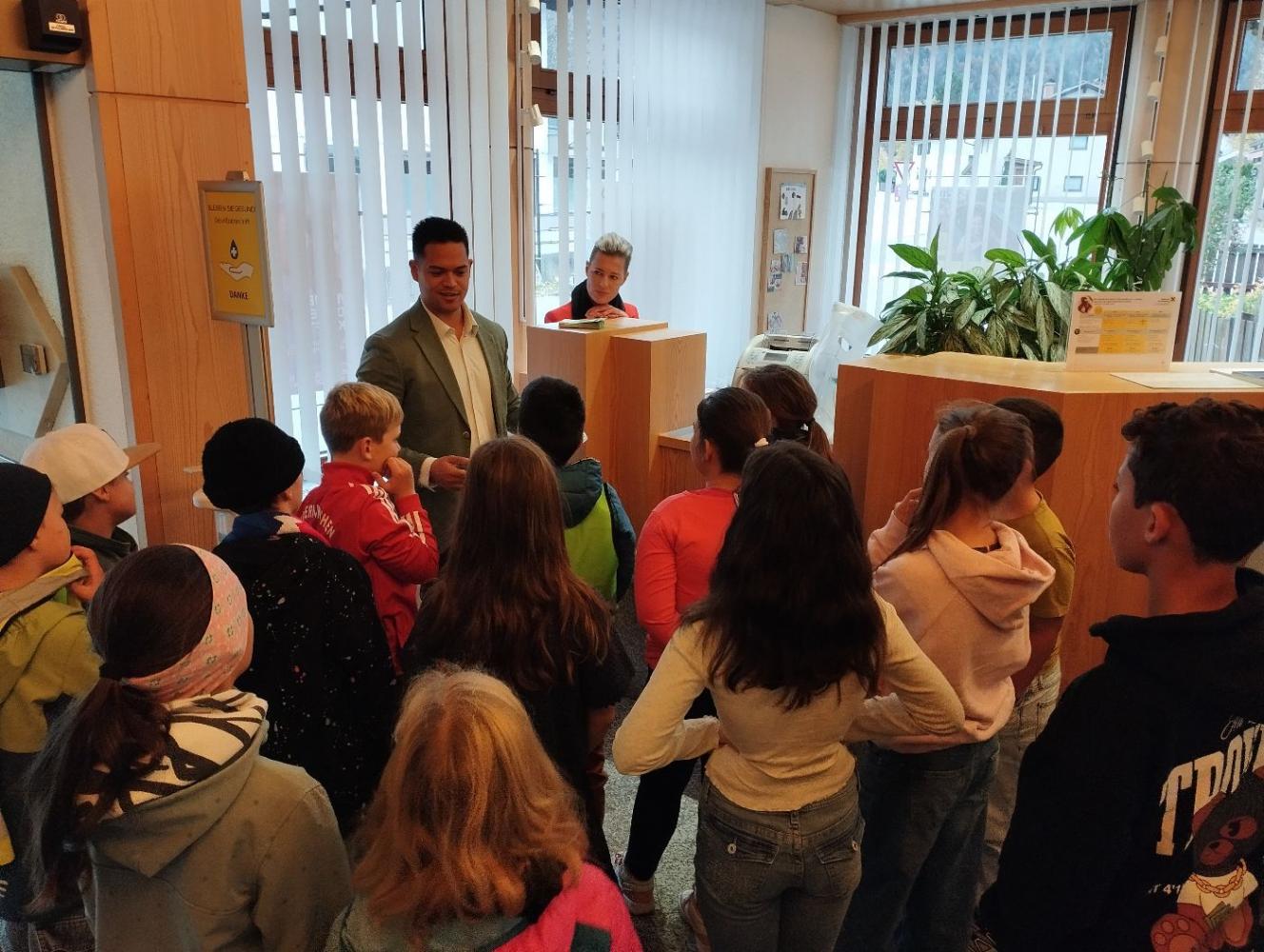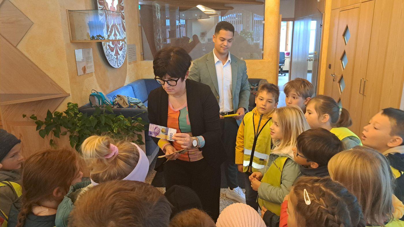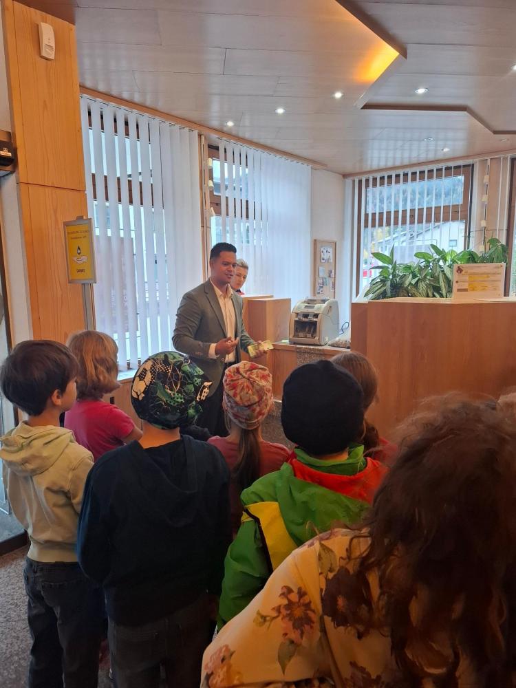 Auch in der letzten Schulwoche von den Herbstferien erwartete unsere Kinder ein spannender Lehrausgang. Wir wurden nicht nur persönlich von unserem Bürgermeister, Herrn Christian Ihrenberger, im Gemeindehaus empfangen, sondern durften auch die Bibliothek im Gemeindehaus sowie die Raiffeisenbank von innen betrachten.