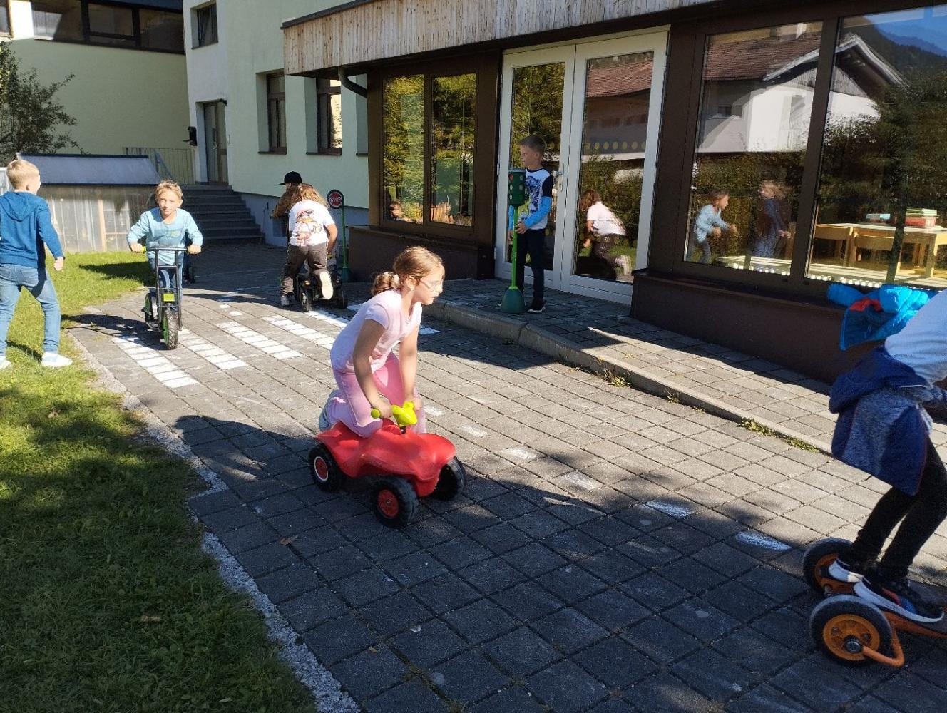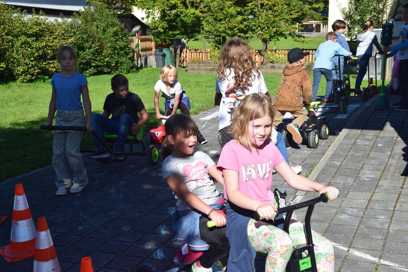 Diese Gelegenheit wurde auch heuer wieder dafür genutzt, um unsere zahlreichen Fahrzeuge in einem eigens gestalteten Hindernis-Parcours einzusetzen. Denn so können sich nicht nur unsere größeren Kinder für die anstehende freiwillige Fahrradprüfung vorbereiten, sondern unsere jüngeren Kinder lernen die Fahrzeuge auch richtig und ordnungsgemäß einzusetzen. Denn Straßen sind immerhin heutzutage wesentlich gefährlicher als noch vor langer Zeit.