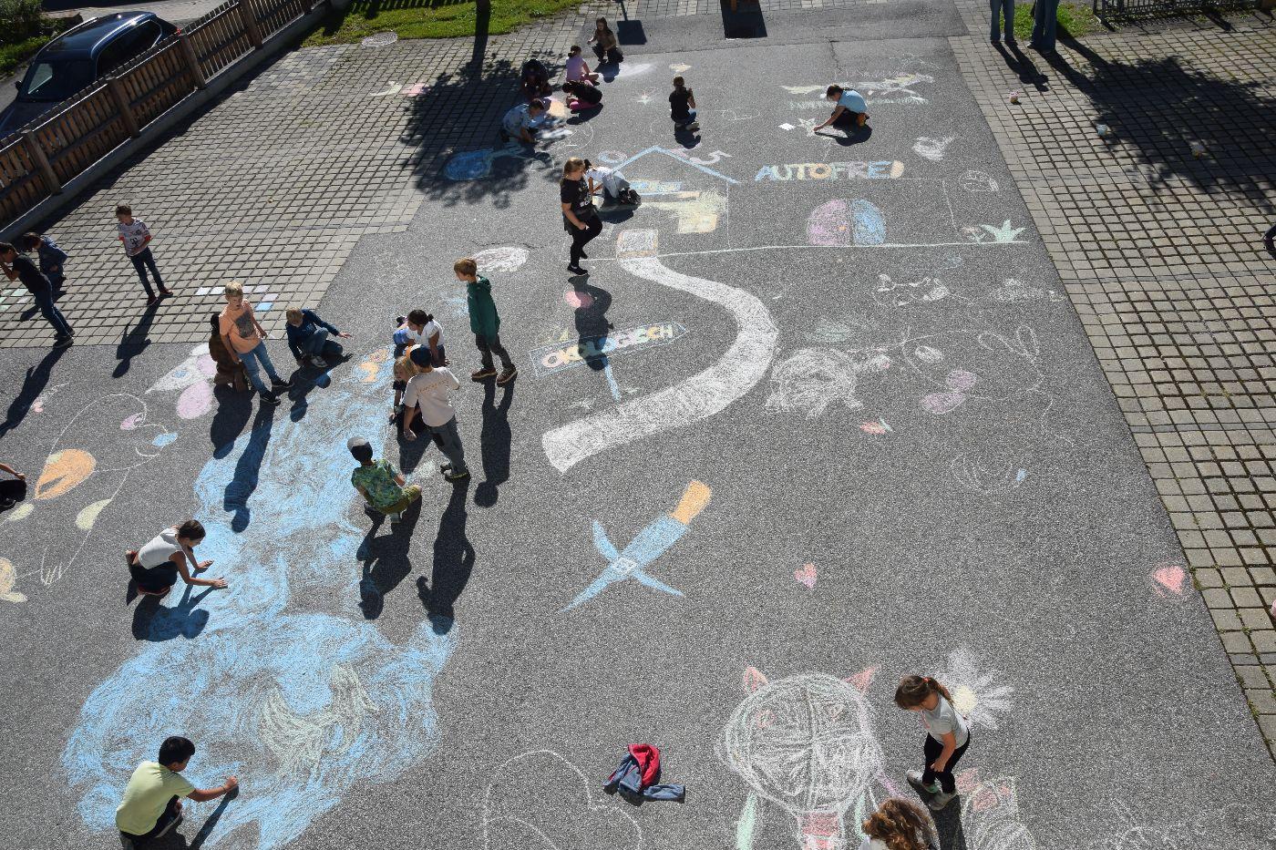 Und natürlich machte auch unsere Malaktion auf dem eigens gesperrten Parkplatz nicht nur Freude, sondern erfüllte auch wieder ihren Zweck. Denn auch die Eltern unserer Schützlinge unterstützen uns an diesem Tag fleißig damit, indem ihre Kinder zu Fuß abgeholt werden. Sogar auf die Lehrpersonen springt diese Idee über, da sich in den letzten Jahren die Zahl der Fahrgemeinschaften oder die Anreise mit öffentlichen Verkehrsmitteln auch an anderen Schultagen erhöhte. Sogar unser Bürgermeister Christian Ihrenberger ließ es sich nicht nehmen, diese Aktion mit uns zu erleben. Gemeinsam können wir alle damit nicht nur Gutes tun, sondern auch noch viel Spaß dabei haben! Wir sind auch im nächsten Jahr gerne wieder mit dabei.