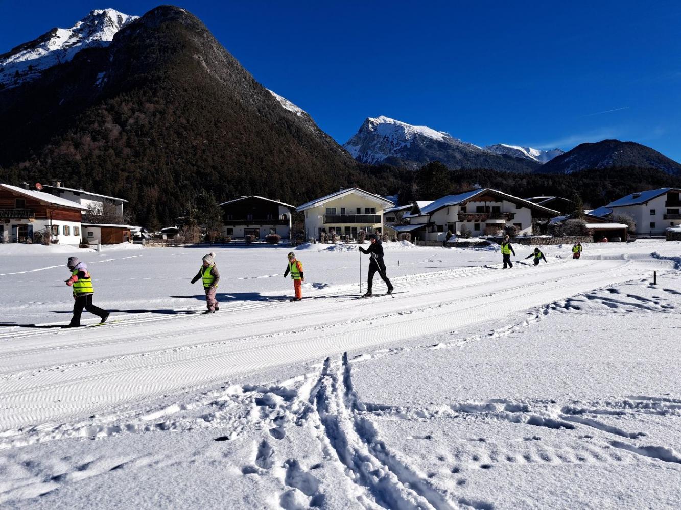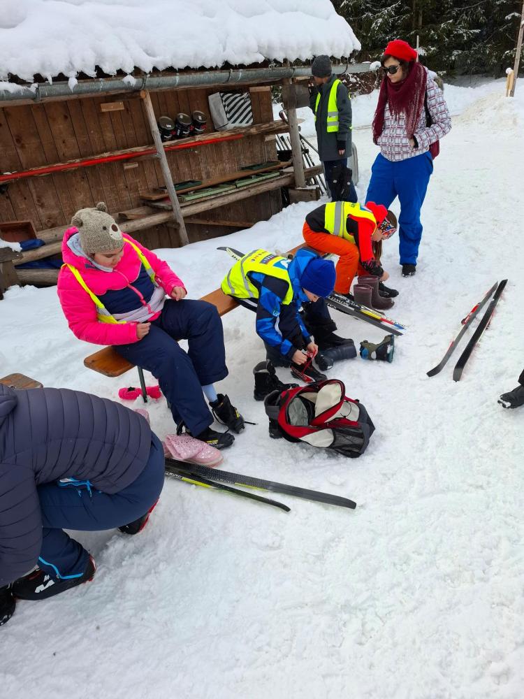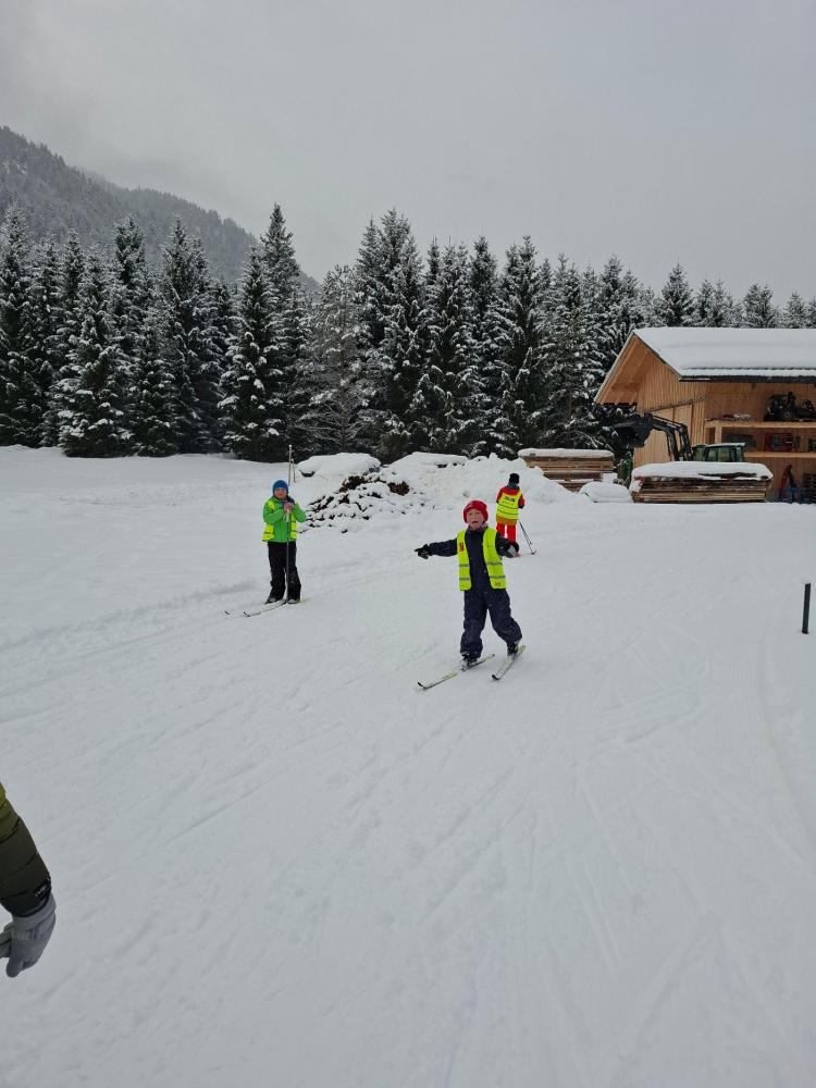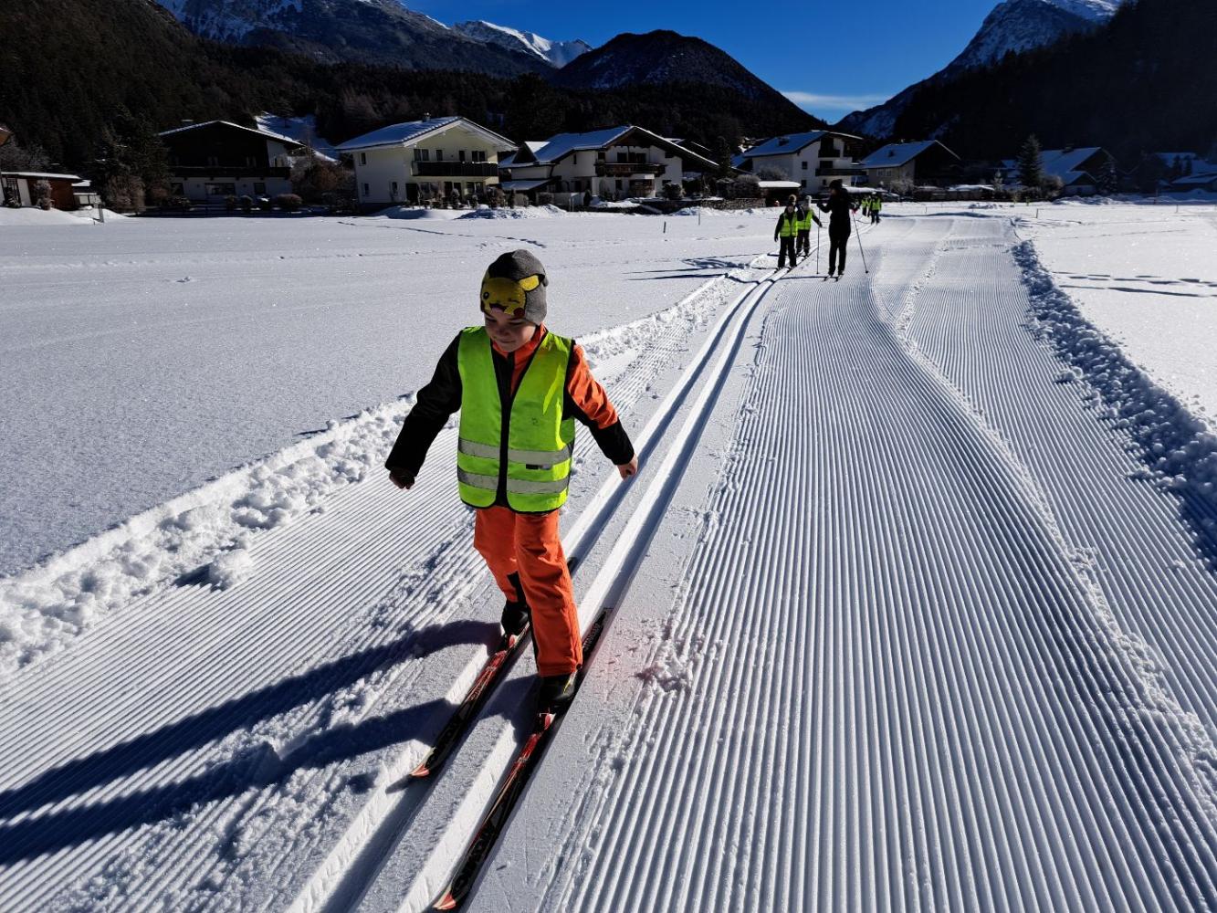 Bei idealer Schneelage durften wir die eigenen sowie die von Armin Lechner ausgeliehenen Langlaufschi auf der ortseigenen Loipe ausprobieren. Jede Klasse bekam dafür in dieser Woche einen eigenen Termin, an dem sie eine Stunde langlaufen konnte. Und da wurde gleich klar, dass sich bei unseren Kindern einige Profis befinden. Denn diese waren teilweise nicht nur professionell ausgestattet, sondern auch sehr erfahren auf den Brettern. Und auch einige unserer Lehrkräfte machten dabei eine ordentliche Figur, welche die Trainingseinheit gleich selbst anleiteten.